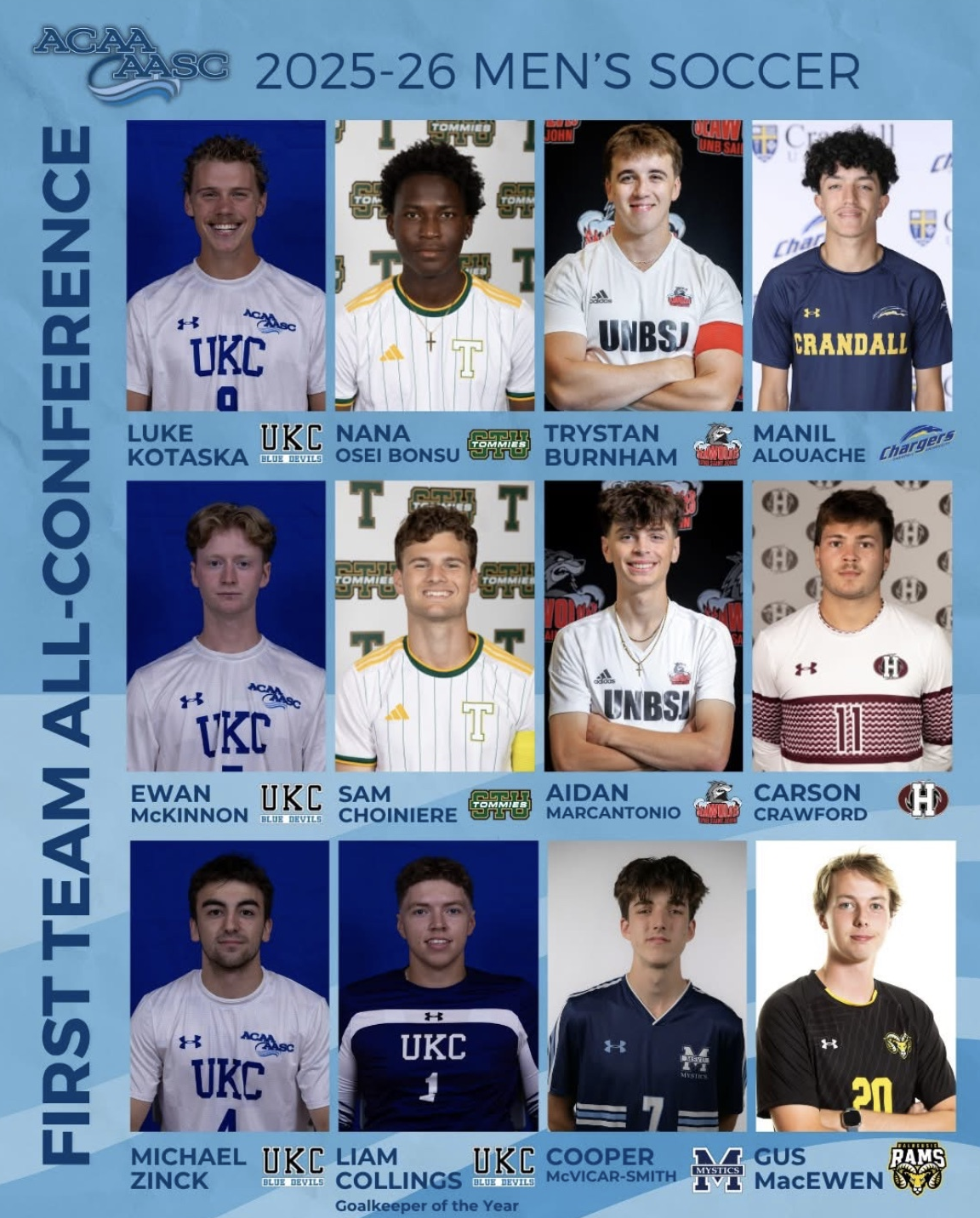 CAPE BRETON FC alumni Liam Collings, Jai Cunsolo-Willox and Noah Hutchison-Mills were recognised in the Atlantic College Athletic Association (ACAA) awards as they did the island proud in Varsity action this Fall.